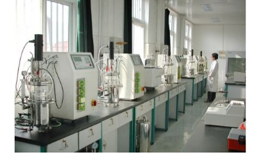 3、待罐体冷却后,将其置于发酵台上,安装完好;打开冷却水,打开气泵电源,连接通气管道开始通气,调节进气旋钮使通气量适当;打开发酵罐电源,设置温度、pH、搅拌速度等, 640r/min下开机转动30min,设定溶氧电极为100;