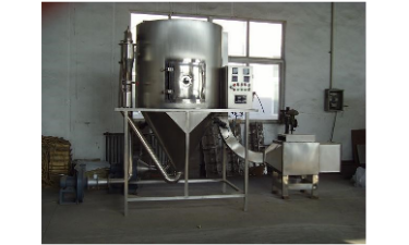 喷雾干燥机是一种可以同时完成干燥和造粒的装置。按工艺要求可以调节料液泵的压力、流量、喷孔的大小,得到所需的按一定大小比例的球形颗粒。