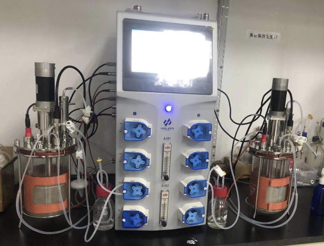 近日,今年会的发酵罐得到中科院的认同并达成合作,为其定制La220系列实验室双联发酵罐。La220系列实验室双联发酵罐采用一台主机控制两台发酵罐的策略组成,主机采用La-M控制柜设计思路,匹配四台滚轮蠕动泵,酸泵和碱泵分开。另外左右两边的罐体可以任意搭配,3L、5L、10L和15L,自由选择。控制系统使用的是西门子控制核心,可以连接电脑,实现联控。