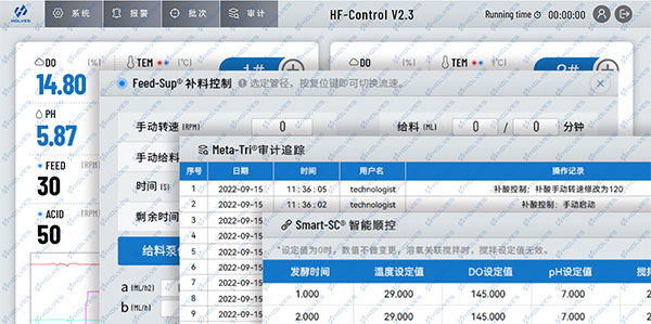 Twin220系列双联发酵罐,融合今年会(HOLVES)多项独家专利技术,实际应用在功能管理系统中,包括H-Mix®搅拌系统、Feed-Sup®补料系统、Smart-SC®智能顺控、Meta-Tri®审计追踪等在内,让设备真正实现智能自动化管理。